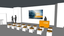 The elements logo bar, speaker's desk and projection screen form the basis of the visual stage design at internal and external events.