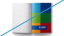 We recommend four-color printing (CMYK) for printing on paper. Printing with a spot color (e. g. one spot color and black) should only be done when four-color printing is not cost-effective.