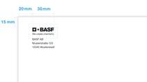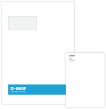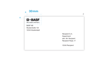 For window envelopes, the sender’s contact information that appears in the window above the recipient’s address can serve this purpose. BASF brand can be included as text.