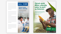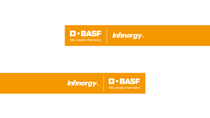 Both brands, the Corporate Brand BASF and the individual brand must be illustrated in the logo bar. They are separated by a white line. The size of the individual brand is defined. The vertical arrangement is intended only for exceptional cases with extremely narrow formats (e.g. app icon or extremely narrow roll-ups or digital banners). A detailed description of the Visualization of the Brand Architecture you will find here.