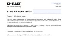 Before the final potential brand alliance / during the early stage in the development process of the brand alliance, the brand alliance check has to ensure the best possible appearance of the BASF brand.
