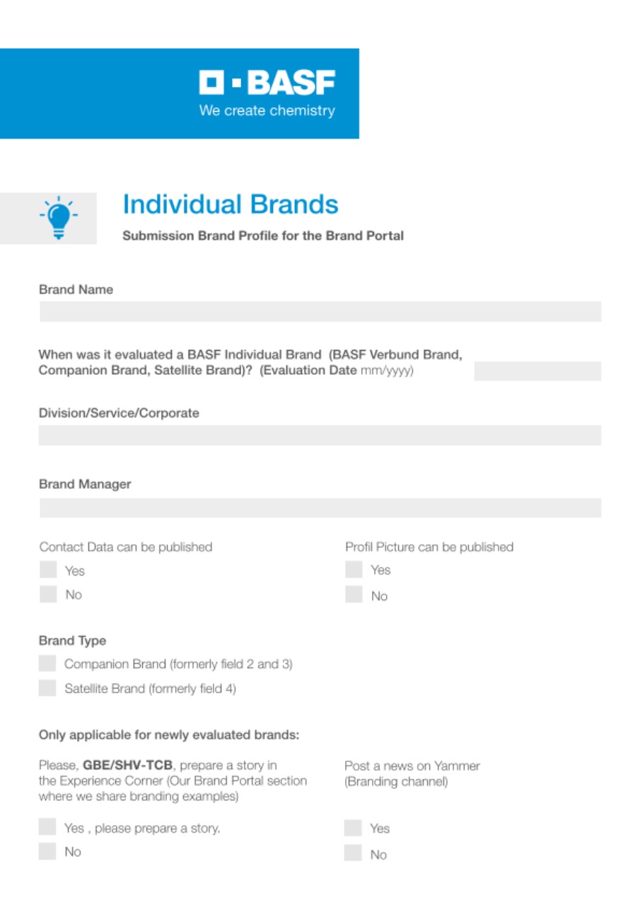 While the strategy for Companion brands is linked very closely to the corporate brand strategy, the degree of individualization increases with the increasing importance of the single brand for their target groups (Companion and Satellite brand); but without losing the reference to the Corporate Brand BASF.